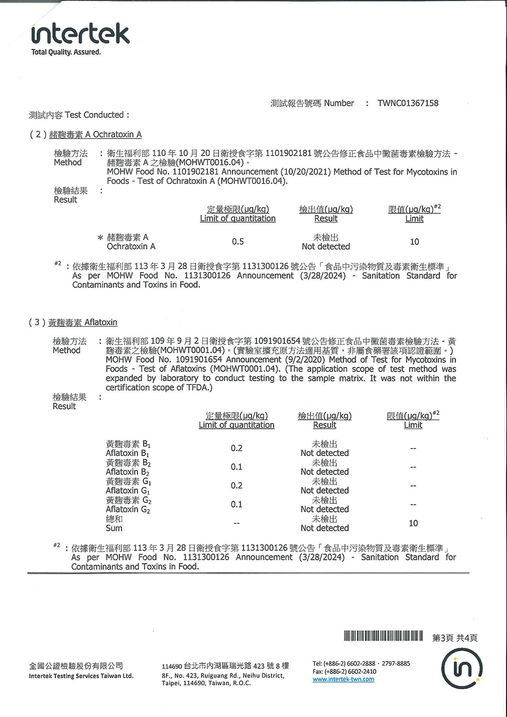 檢驗日期:2025/06/24/項目:微生物檢測、赭麴毒素、黃麴毒素