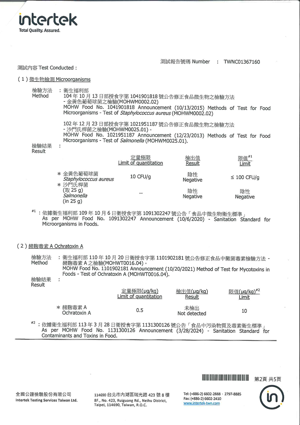 檢驗日期:2025/06/24/項目:微生物檢測、赭麴毒素、黃麴毒素