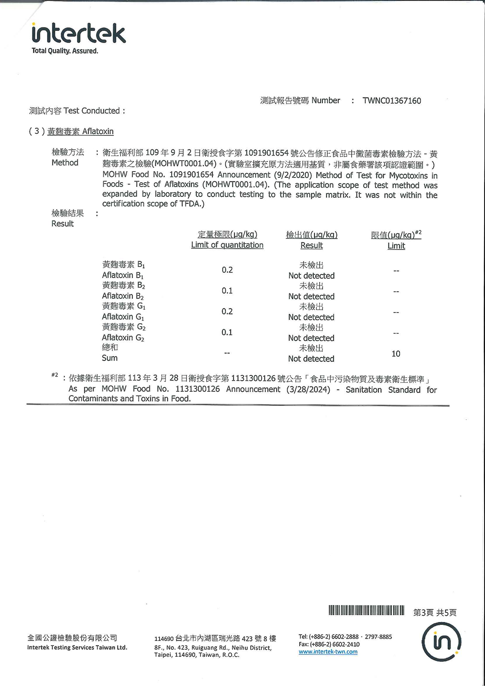 黃麴毒素檢測
