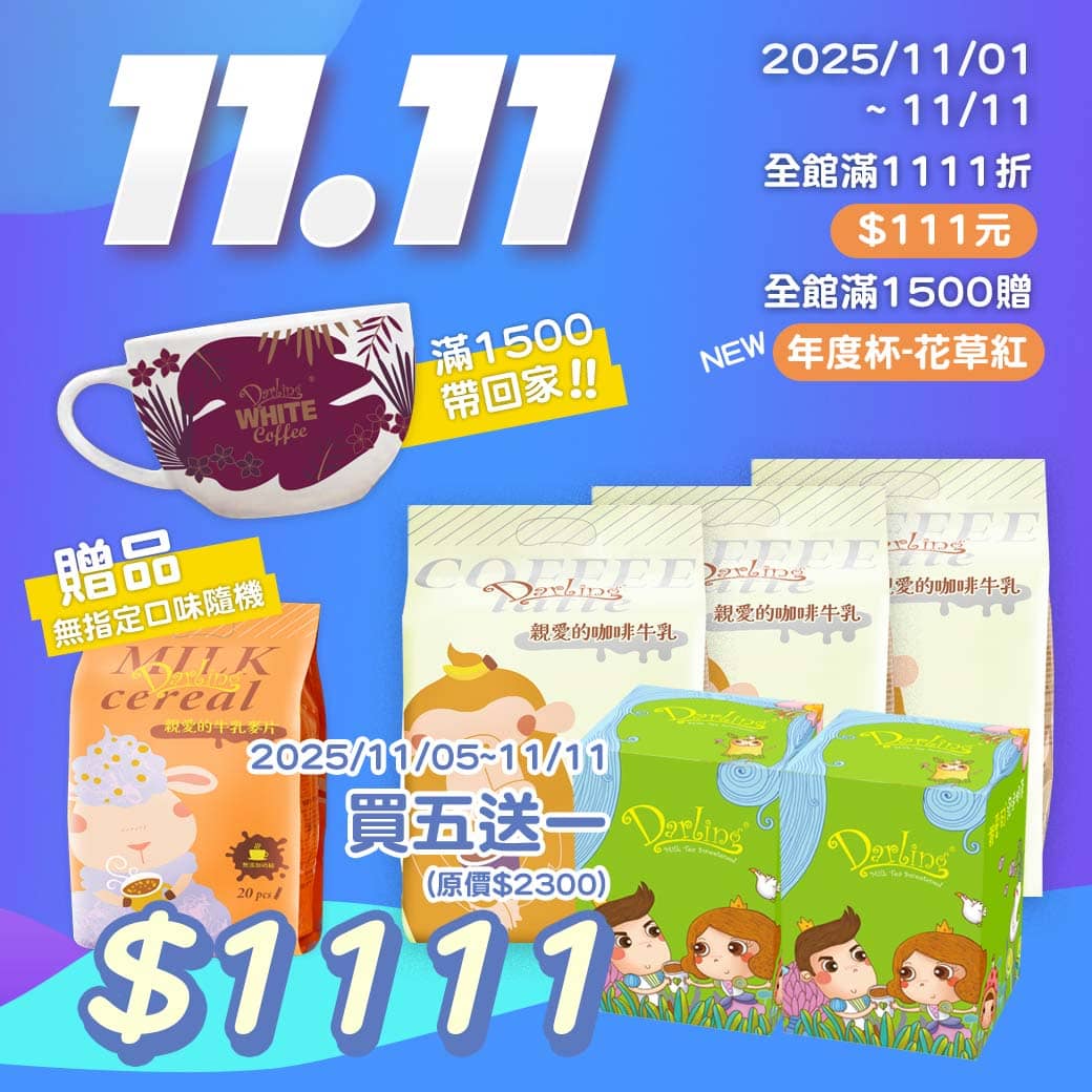 《雙11大組任選5入贈1入$1111》親愛的白咖啡20包